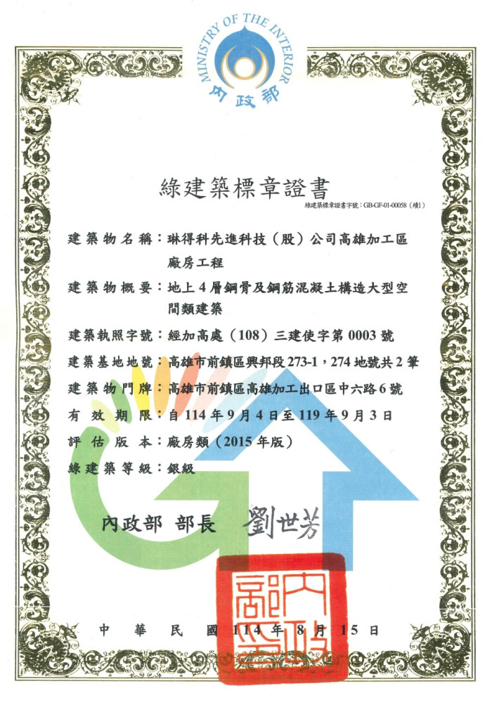 「落實企業永續發展的精神!」這一直是台灣琳得科努力的方向,我們在2020年擴增新廠,並成為前鎮科技產業園區第一個取得綠建築標章認證的企業。