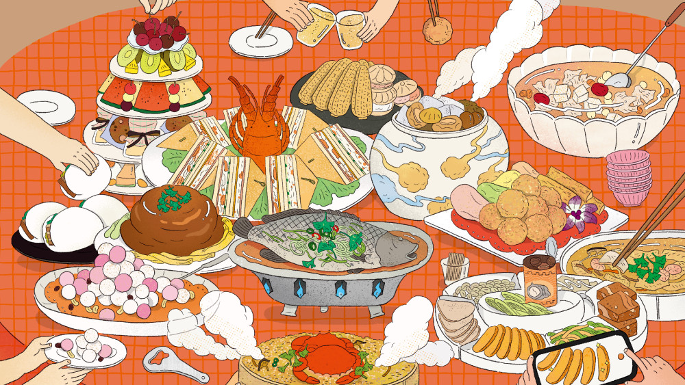 一系列的經典佳餚躍然紙上,透過可愛的插畫筆觸及文字搭配,創造出與眾不同的視覺辦桌體驗!